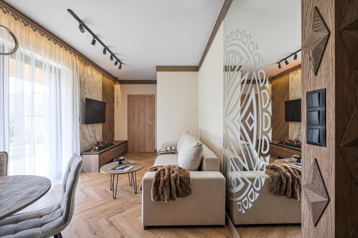 Apartament z 1 sypialnią, balkonem i widokiem na góry. This apartment is comprised of 1 living room, 1 separate bedroom and 1 bathroom with a walk-in shower and free toiletries. The well-equipped kitchen features a stovetop, a refrigerator, a dishwasher and kitchenware. Featuring a balcony with garden views, this apartment also offers air conditioning and a flat-screen TV. The unit offers 2 beds. Apartament - 4 osobowy. Powierzchnia pokoju ok.: 30 mkw. ;
